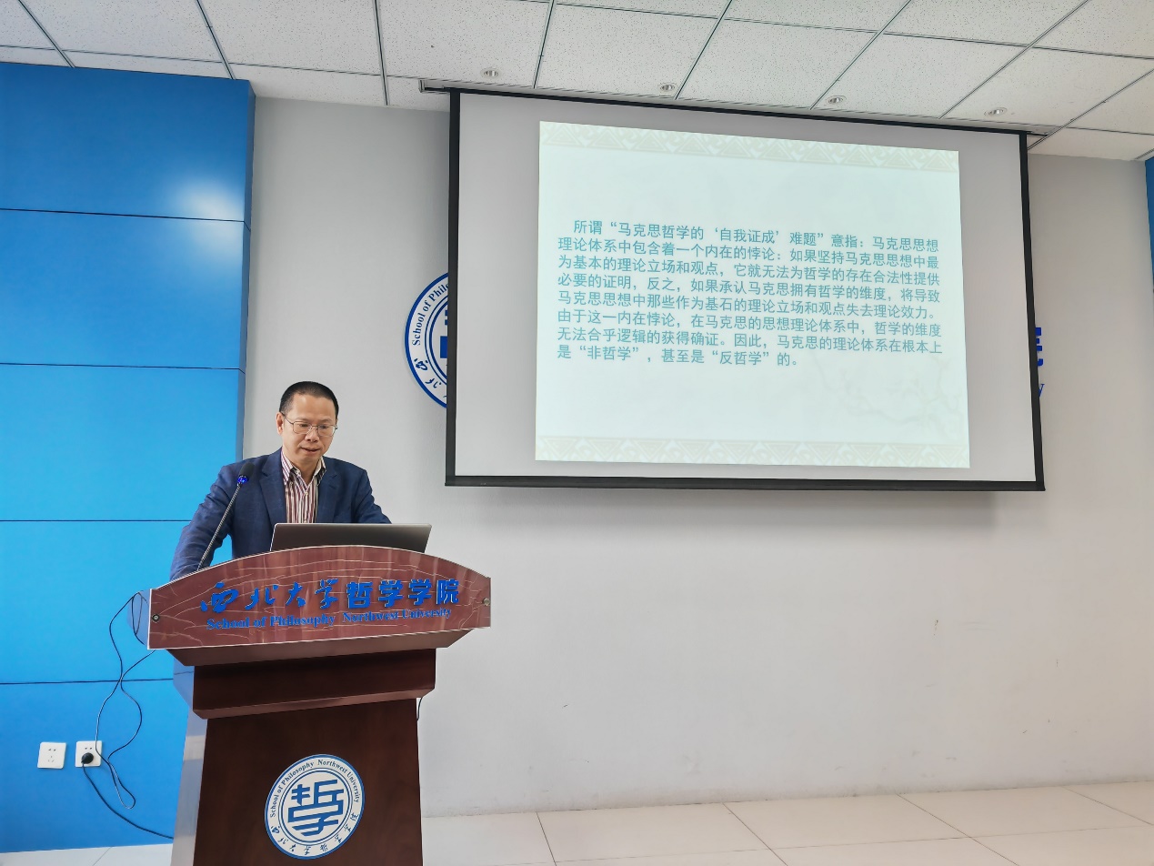 10月22日下午,吉林大学人文学部部长、教育部重点研究基地“哲学基础理论研究中心”副主任贺来教授做客我校“侯外庐学术讲座”第三百讲,在长安校区西学楼3层国产手机精品a会议室作了题为“‘哲学的消灭’与哲学的使命:马克思的哲学观”的学术讲座。国产手机精品a院长张学广教授主持讲座,刘宇教授与谈,国产手机精品a内外师生80余人参加了讲座。