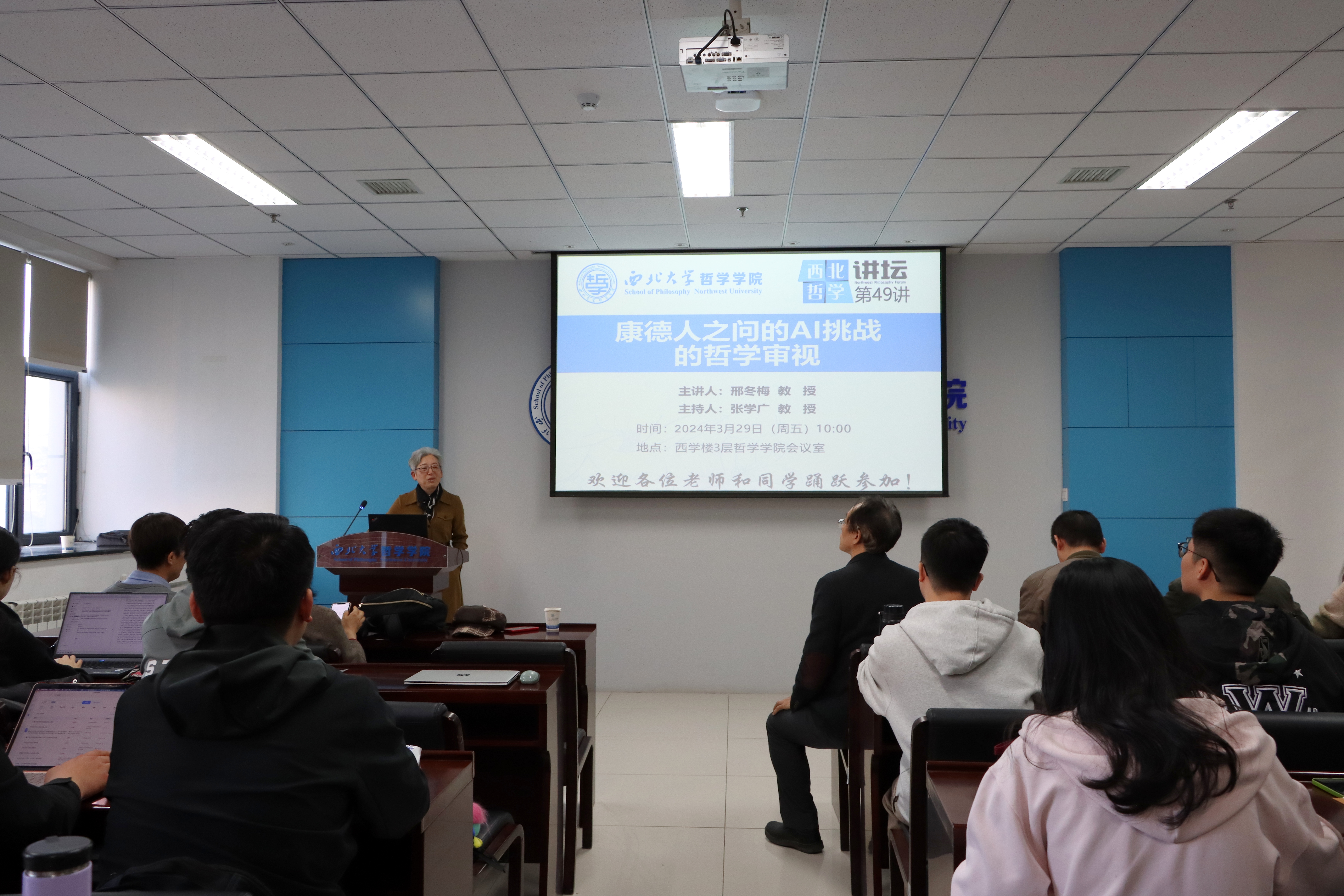 3月29日上午,苏州大学政治与公共管理学院哲学系教授、博士生导师邢冬梅做客“西北哲学讲坛”第49讲,在长安校区西学楼3层国产手机精品a会议室作了题为“康德人之问的AI挑战的哲学审视”的专题讲座。本次讲座由张学广院长主持,院内外师生70余人参加。
