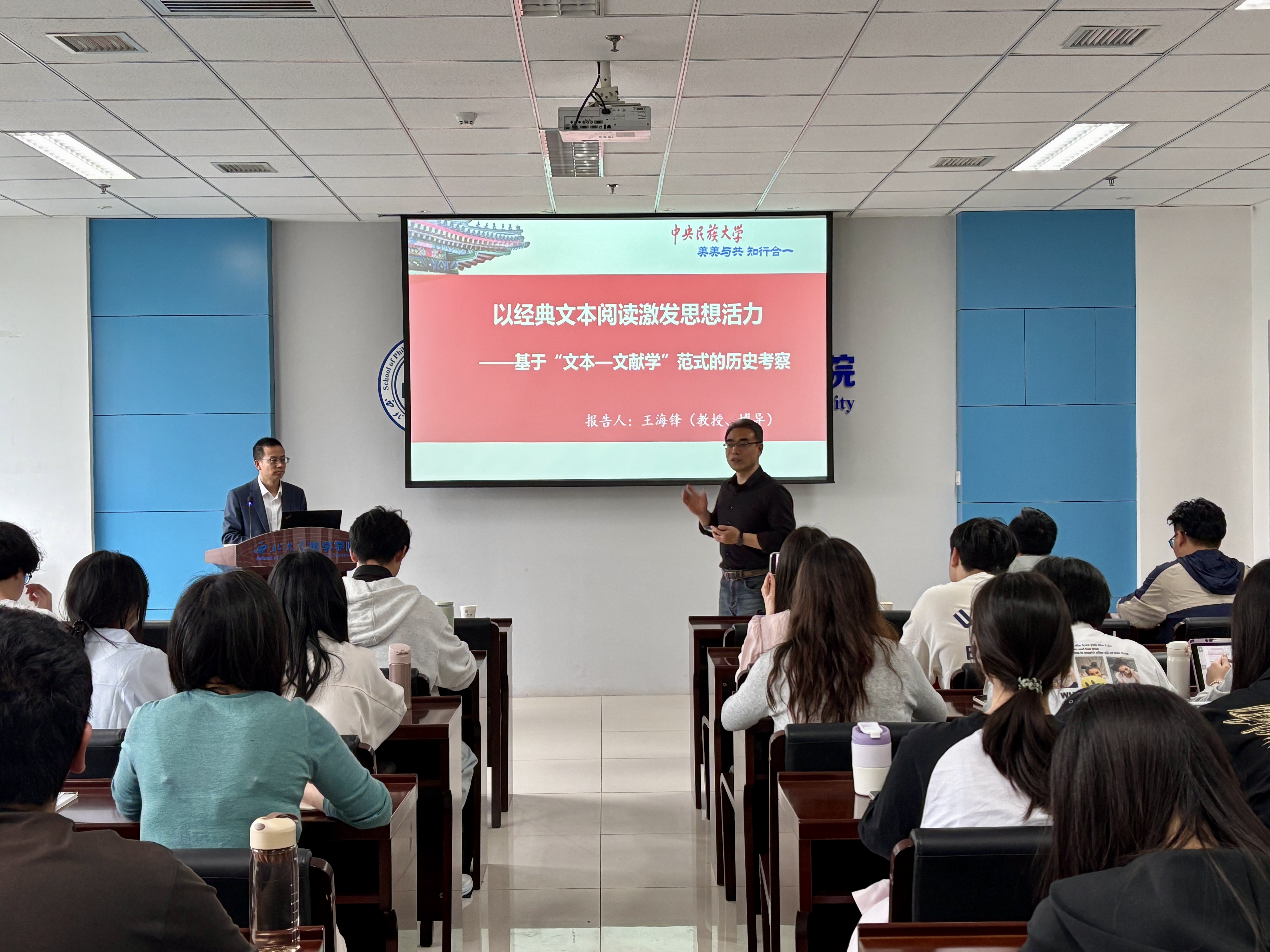 4月27日,国家重大人才计划领军人才、教育部重大人才计划青年学者、中央民族大学知行讲席教授王海锋做客我校“侯外庐学术讲座”,作了题为“以经典文本阅读激发思想活力——基于‘文本-文献学’范式的历史考察”的专题讲座,国产手机精品a师生代表参加了讲座。